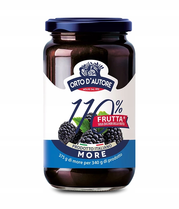 Dżem More 110% to owocowa propozycja z linii 110% owoców od Orto d’Autore – dzięki wyjątkowej recepturze dostarcza pełnię intensywnego smaku jeżyn w każdym słoiku.