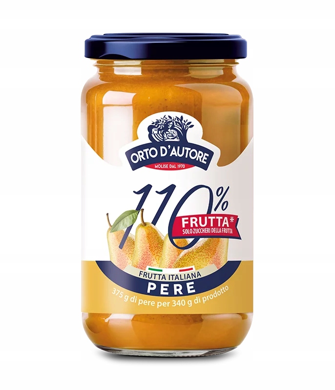 Dżem Pera 110% to owocowa propozycja z linii 110% owoców od Orto d’Autore – stworzony po to, aby wydobyć naturalny, soczysty smak dojrzałych gruszek i zamknąć go w każdym słoiku.